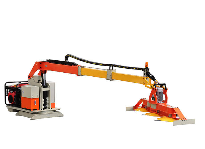 这款修剪机采用“基础平台 + 功能组件”的灵活组合模式,构建起一套强大的模块化体系。其核心模块由动力底盘、修剪主机、延伸臂与附件系统四大部分构成。动力底盘犹如设备的“双腿”,为整机提供基础的移动能力。它不仅支持四轮驱动,还具备液压升降功能,能够轻松应对15°以内的坡度,确保设备在复杂地形中稳定行驶。修剪主机则是设备的“核心大脑”,集成了刀片、电机与传动系统,为绿篱修剪提供基础的动力和功能支持。延伸臂的设计堪称一大亮点,它通过伸缩、旋转与折叠结构,将作业范围大幅扩展,最宽可达4米,最高可达3米,能够轻松覆盖高架桥底、隧道壁等传统设备难以触及的区域,大大提高了作业的覆盖范围和效率。