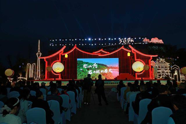 与往届不同,本届桃花荟开幕式选址东安湖畔的溪峰岛,以夜幕为幕布,打造出一场沉浸式光影盛宴。开场舞《桃花诺》中,十二位身着飘逸舞裙的“桃花仙子”以水袖演绎春日柔情,随后非遗节目《龙舞洛带·花间游》将客家龙文化与数字科技完美结合。龙身镶嵌的桃花灯与全息投影的花瓣特效交相辉映,让传统民俗在光影交错中焕发新生。