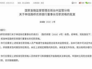 2026年3月林佳获监管批复 正式就任路桥农商银行董事长一职
