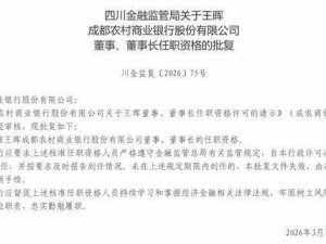 四川金融监管局核准王晖任成都农商银行董事长 任职资格获批