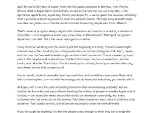 苹果50周年里程碑:库克致公开信,感恩用户共筑科技传奇之路