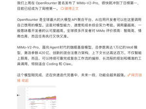 雷军透露:MiMo-V2-Pro在OpenRounter平台登顶周榜受开发者赞誉