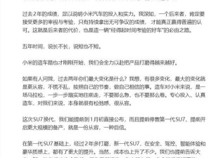 雷军谈小米造车:以从容之姿稳步前行,新一代SU7涨价在即
