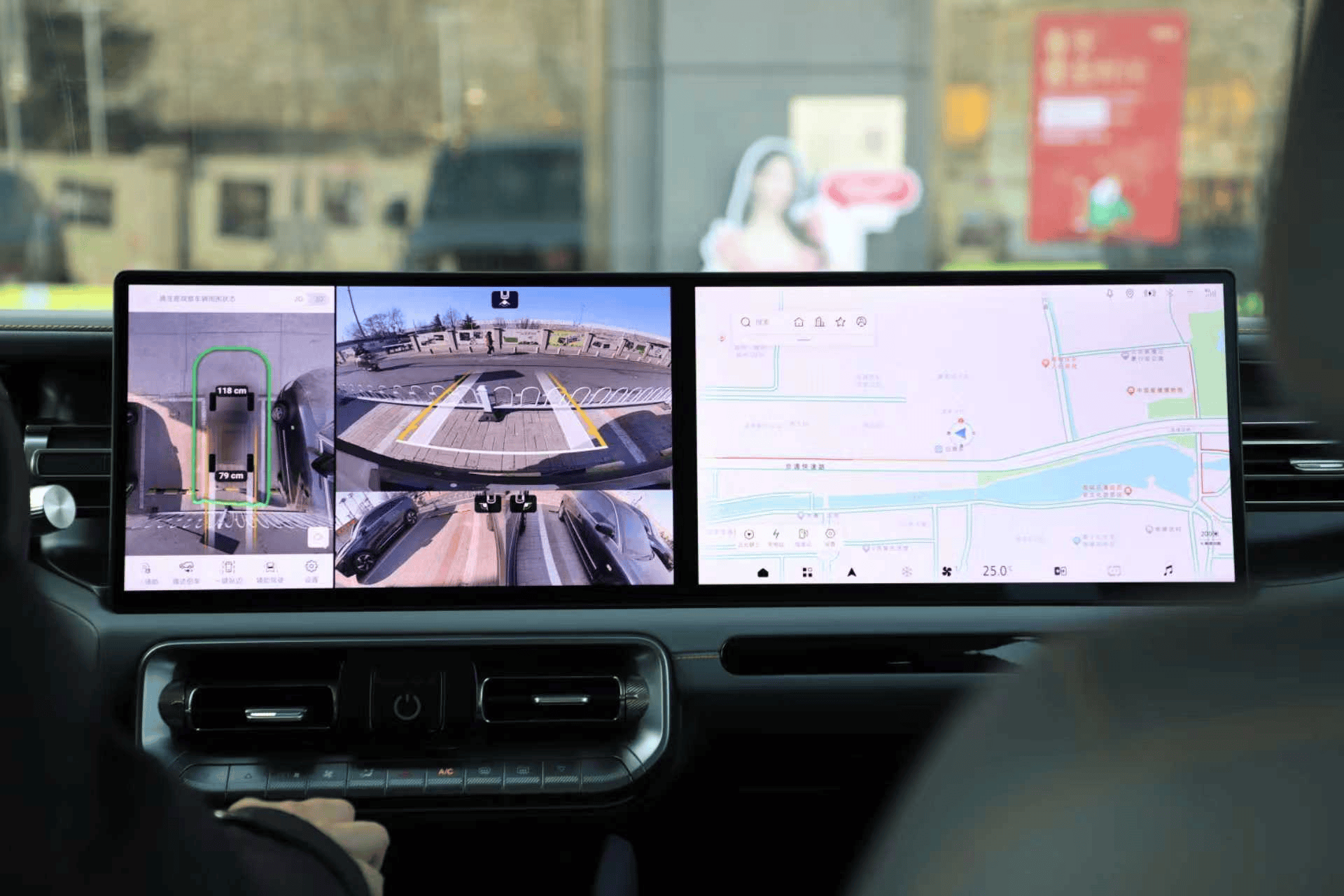 在复杂路况中,双联屏的实用价值得到充分验证。360°全景影像与180°透明底盘功能通过高清大屏同步呈现,配合全新高德地图的精准导航,驾驶者既能实时掌握车辆周围环境,又能清晰预判前方路况。当车轮碾过碎石滩或穿越狭窄峡谷时,屏幕可自由切换全屏/分屏模式,将底盘障碍、轮胎位置等细节以毫米级精度还原,让越野新手也能获得老司机般的从容自信。这种"所见即所得"的驾驶体验,彻底打破了传统越野车"盲操"的局限。
