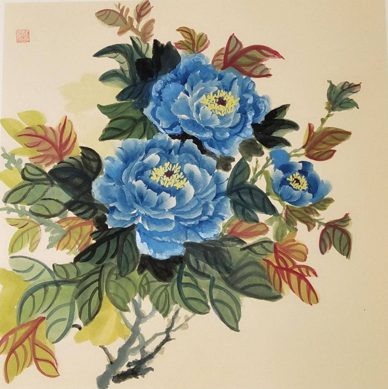 陆发香的作品以传统笔墨为根基,融合个人对自然的观察与感悟,形成独特的艺术语言。例如,其代表作《花开富贵》以50cm×50cm的宣纸为载体,通过细腻的工笔与浓淡相宜的色彩,展现牡丹的雍容华贵,寓意吉祥美好;另一幅《紫气东来》(69cm×45cm)则以写意手法描绘山间云雾,笔墨奔放却不失章法,传递出祥瑞之气。他的创作题材广泛,涵盖花鸟、山水,既有对传统题材的重新诠释,也有对现实生活的艺术提炼,展现出深厚的文化底蕴与时代精神。